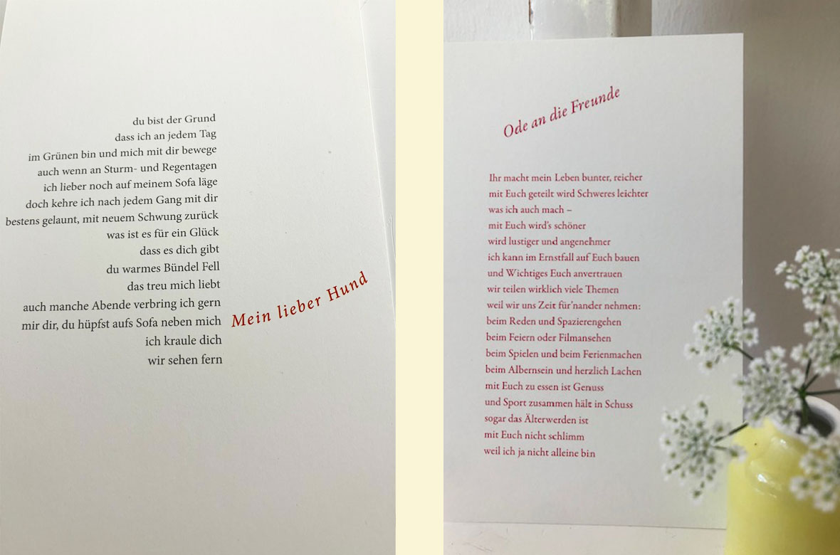 feinezeilen ist ein kleiner feiner Verlag aus Hamburg, hinter dem die Autorin Amelie Fechner steckt. Ihre vielschichtige, berührende Lyrik wird hier in grafisch schöner, schlichter Form auf Postkarten und Poster gedruckt. Zudem wird die Autorin ihre Gedichtbände mit zur Ausstellung bringen, die allesamt bei Ellert und Richter erschienen sind, darunter auch ihr jüngstes Werk „trotzdem“ und die Bücher auf Wunsch signieren.