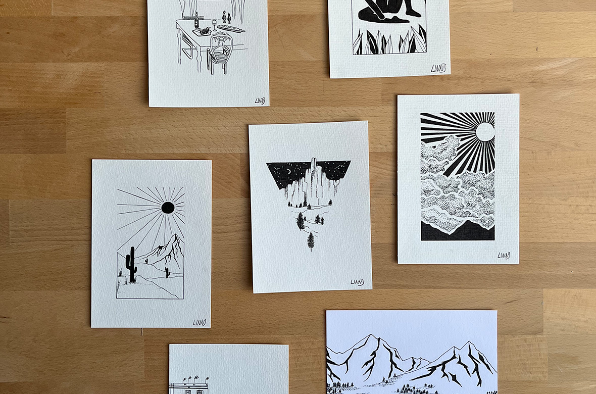 Hi, ich bin Linn. Papeterie und Kunst sind mein Weg zu entspannen. Bunte Malereien aus Acryl und schwarz weiße Grafiken aus Ink umfassen meinen Kunststil. Beide Kunstarten faszinieren mich und bald ja vielleicht auch dich, wenn du an meinem Stand vorbei schaust.Es macht mir immer wieder eine Freude, wenn eins meiner kleinen Kunstwerke bei einem/einer Kunstliebhaber*in ein neues zu Hause findet. Also kommt gerne vorbei und lasst euch bezaubern. Ich würde mich sehr freuen 🙂